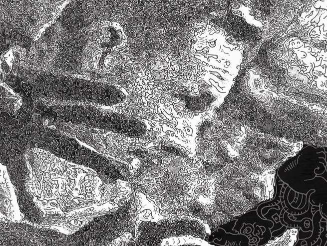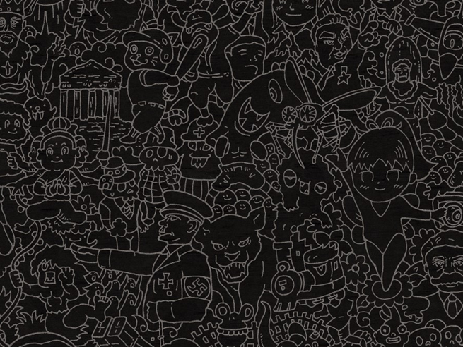 The original of this work is Tokyo Olympics 1964 poster created by graphic designer Yusaku Kamekura. I think this poster is a symbol of Japan's high economic growth period. Also from the perspective of art and design history, it is a highly regarded work. Therefore, it is inscribed in many people's memories. When you look at the work from close, it is composed of various characters. They are all images to be completed in the Olympics. There are various Olympic Games, successive medalists and heroes and Image of myths related to the ancient Olympics. However, at the same time, negative history and images of the Olympics are also drawn. Make the light and shadow of the Olympics coexist by drawing the nationalism, commercialism, feminism, ethnic rights and other human rights issues that the Olympics faces, and environmental issues, doping. I would like to submit the contradictions and significance of the Olympics by this. And about the 2020 Tokyo Olympics next year. We need to have a more neutral perspective, not a dualism of favor or opposition. I think that we can see different things by changing the point of view a little, and we will be able to take a new look.
