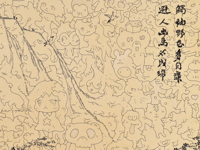 ペン、台湾産コーヒー、クラシコファブリアーノ紙、パネル